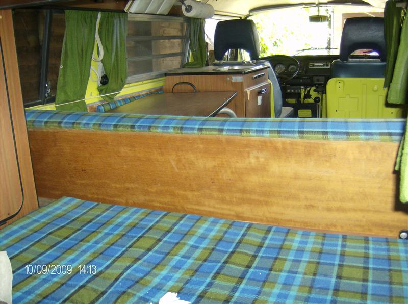 A quick site for my new Bay window camper A 1975 pop top Westfalia Auto 2.0L, exactly what I was after. Note this is an old page and will be updated soon, he's got a subaru engine now ! click on the thumbnail images below to see bigger images then click the back button on your browser to return to this page Its LHD. Runs like a absolute dream, a lot quicker than I expected, definitely no speed or performance issues. Needs remedial work, mainly electrics and a good tidy. Will respray but no idea of colour yet. No name for him/her as yet. 28k miles .. cough ! Absolutely immaculate underneath. Paint is weather worn, originally from Nevavda US its a great find. To do: Must find out how to get indicators sorted out, the main lights dim when the indicators are on, someone said its the earth but what exactly do they mean by that, there must be miles of earth cabling to check :-( Driver window winder mechanism just spins, tried to get it out today but had to shelve it, I can see how it works but it just will not come out (hats off to the production line for getting it in !) I fixed fuel line next to petrol tank, completely split and petrol everywhere, could have been a disaster. have read about some sort of fire extinguisher for the engine, must find out about these. Interior is really exceptional bar roof lining in front cab. Hate to say this (as the purists would kill me) but I'm going to modernise it to suit my needs. Great bonus, its already got 3 seat belts fitted, unfortunately they are lap belts so need to adapt to suit car seats for kids (any ideas pls email me [email protected]) really needs rewiring if I am honest. List of items to get: New window wind up mechanism - and then fit it somehow. new seals for all windows and roof - replace all wiring loom fridge (gap for it but no fridge) and what does the control below actually do (should it do) What's this control for under the seat?